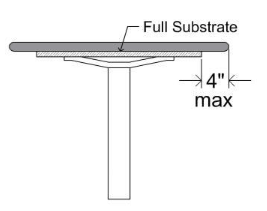 5. Tabletop applications require the use of a full substrate which extends within 4” from the edge of the table top. The manufacturer’s specification for the pedestal must be checked to verify it is designed to support the size and weight of the table top.